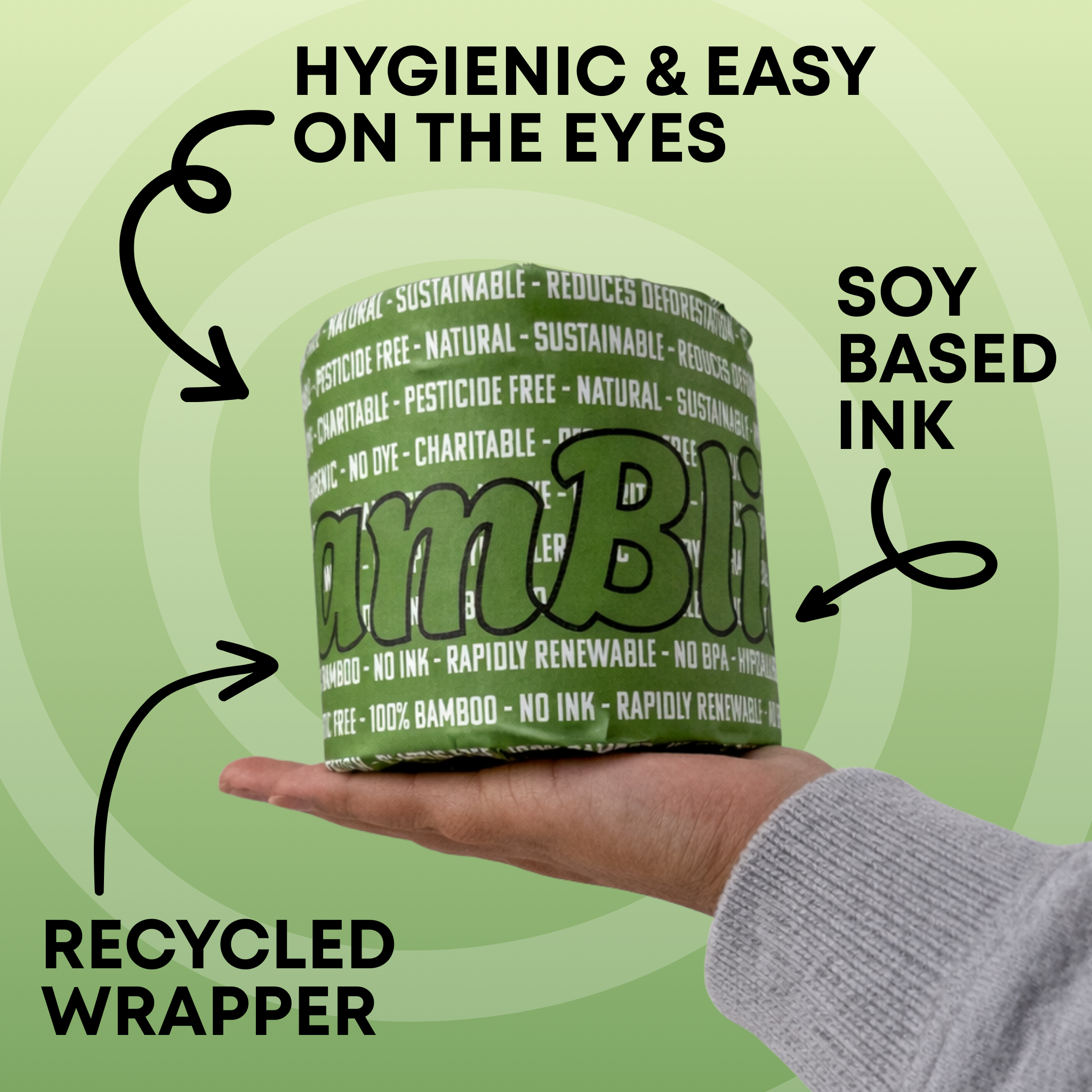 Before boxes get recycled, they’ve already used up valuable resources; trees, energy, water, and ink. So instead of sending more cardboard through that cycle, we rescue boxes that big companies can’t use, whether due to misprints, overstock, or design changes, and give them a new purpose. Your box of 12 BamBliss rolls might look a little different on the outside, but inside, it’s the same soft, sustainable quality you know and love. A perfectly imperfect box, doing something perfectly good